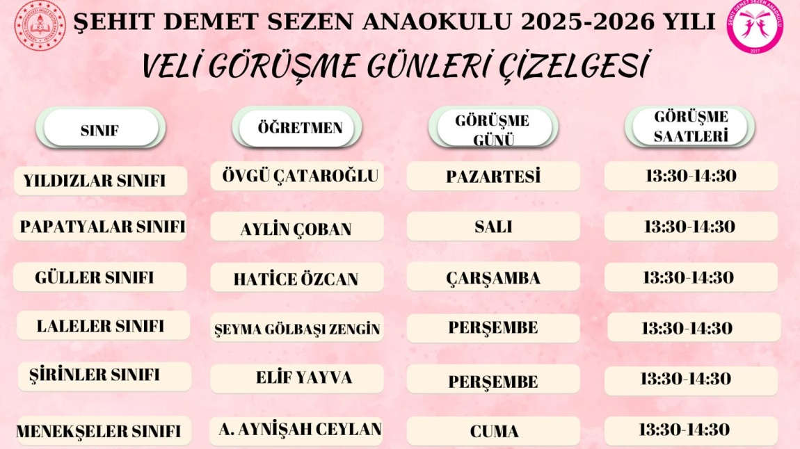 VELİ GÖRÜŞME GÜNLERİ ÇİZELGESİ